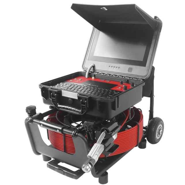 - The pipe inspection camera system P100PTF-UD2 system integrates dual HD cameras,a surface control unit(which is detachable from the cable drum),and a portable drum with pull rod for easy transport and operation.