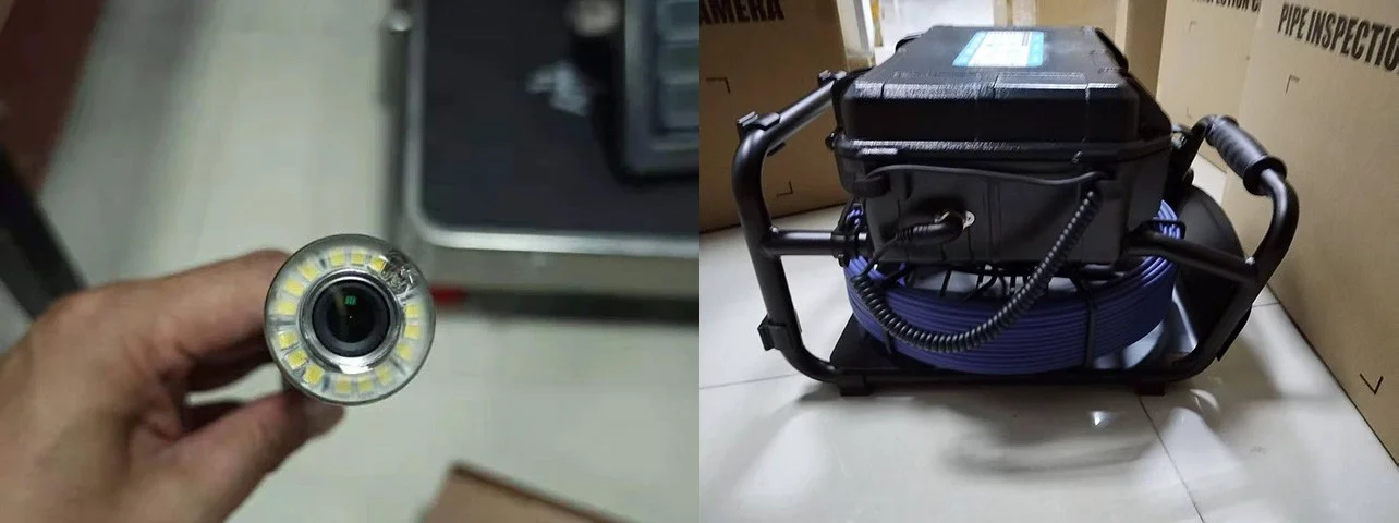 Minirörinspektionskamerasystem PSE10020 kommer med 20 mm/14 mm videohuvud, tryckstången hjälper kameran in i det underjordiska röret för att fånga videon/bilden av rörväggen. -